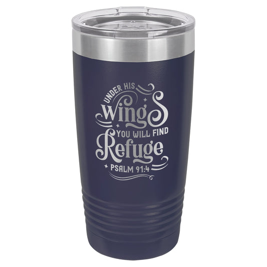 Under His Wings You Will Find Refuge - Engraved 20oz Stainless Steel Tumbler