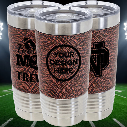 20oz Stainless Steel with Football Leatherette Tumbler - Custom Laser Engraved