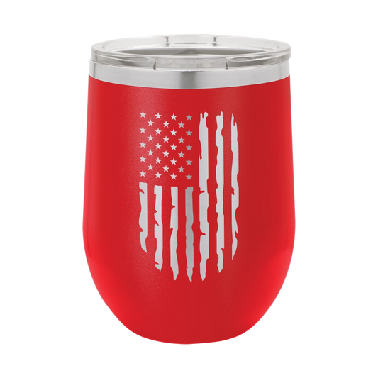 Distressed American Flag - 12oz Stainless Steel Wine Tumbler