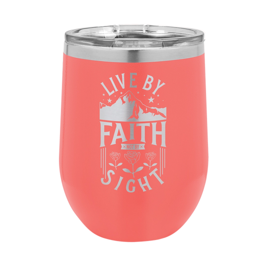 Live by Faith, Not by Sight - 12oz Stainless Steel Wine Tumbler