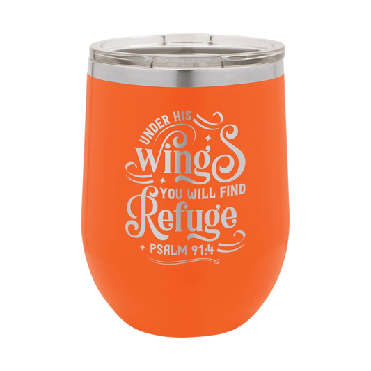 Under His Wings, Psalm 91:4 - 12oz Stainless Steel Wine Tumbler